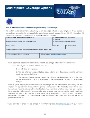 complete an application for coverage in the Marketplace, you will be asked to provide this information. This