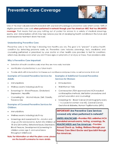 eligible preventive care costs when performed in-network through your Pan American MEC that has UNLIMITED