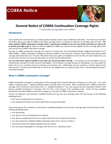 information about your right to COBRA continuation coverage, which is a temporary extension of coverage under the Plan. This