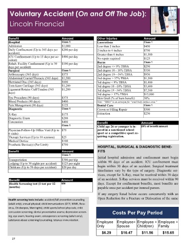 Health Screening test (1 test per 12 $50 days. Except for confinement benefits, most benefits are