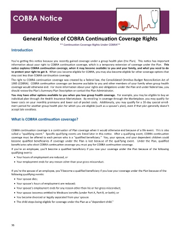 information about your right to COBRA continuation coverage, which is a temporary extension of coverage under the Plan.   This