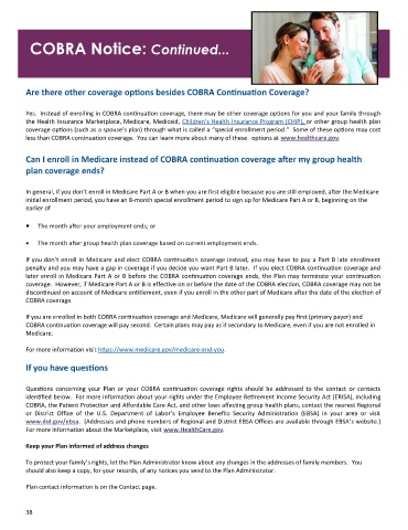 later enroll in Medicare Part A or B before the COBRA continuation coverage ends, the Plan may terminate your continuation