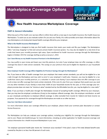 Marketplace. To assist you as you evaluate options for you and your family, this notice provides some basic information about the