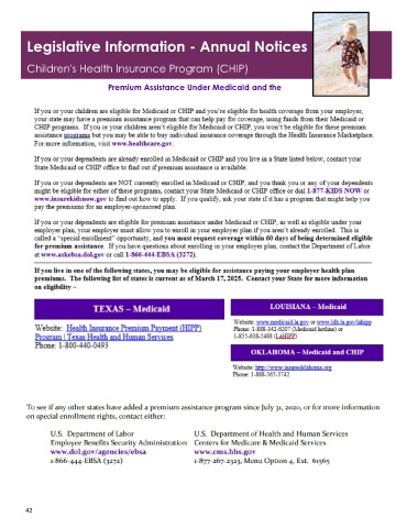 Legislative Information - Annual Notices Children's Health Insurance Program (CHIP) Premium Assistance Under Medicaid and the 42