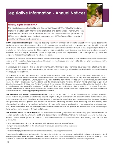 enrolled. If you would like more information on WHCRA benefits, call your local Human Resources Department.