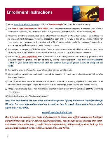 New Hire Enrollments are also done online through our Affinity Neurocare Employee Benefit