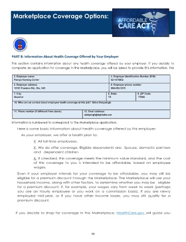 PART B: Information About Health Coverage Offered by Your Employer