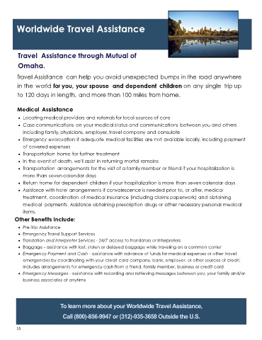 • Emergency Payment and Cash - assistance with advance of funds for medical expenses or other travel