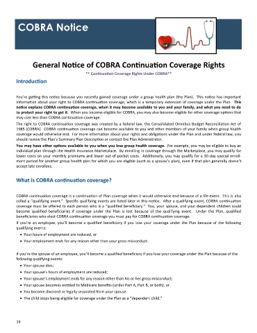 information about your right to COBRA continuation coverage, which is a temporary extension of coverage under the Plan. This