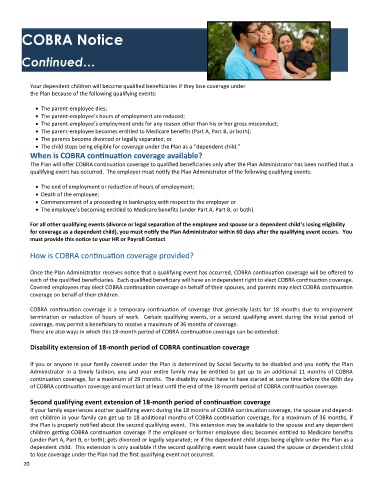 qualifying event has occurred. The employer must notify the Plan Administrator of the following qualifying events: