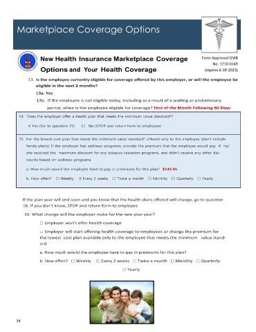 Marketplace Coverage Options New Form Approved OMB No. 1210-0149 and Your (expires 6-30-2023) 24