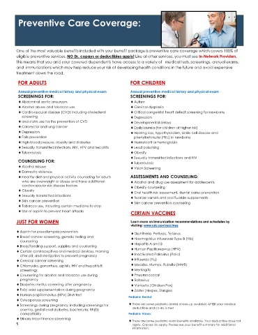 eligible preventive services. NO Dr. copays or deductibles apply! Like all other services, you must see In-Network Providers.