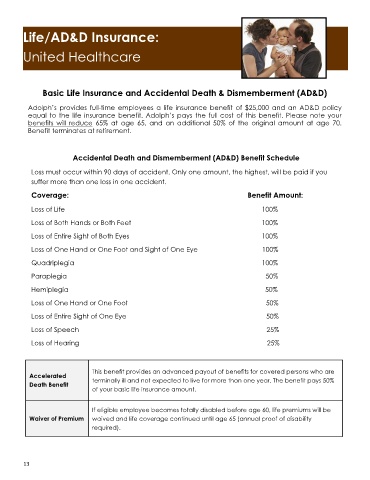 equal to the life insurance benefit. Adolph’s pays the full cost of this benefit. Please note your