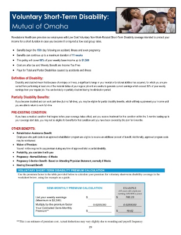 Revelations Healthcare provides our employees with Low Cost Voluntary Non-Work-Related Short-Term Disability coverage intended to protect your