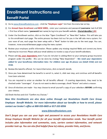 New Hire Enrollments are also done online through our Revelations Health Care Group