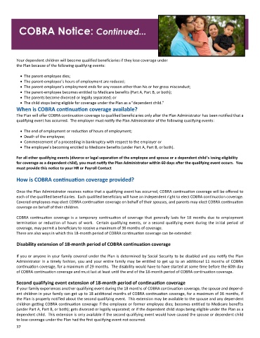 qualifying event has occurred.  The employer must notify the Plan Administrator of the following qualifying events: