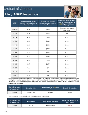 35 year old below to determine your monthly cost. This example provides $100,000 of Basic Life and additional $100,000