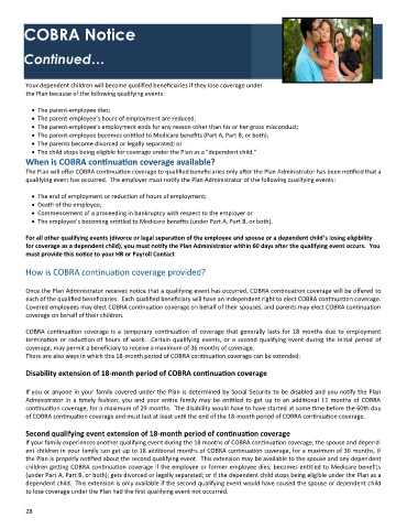 dependent child. This extension is only available if the second qualifying event would have caused the spouse or dependent child