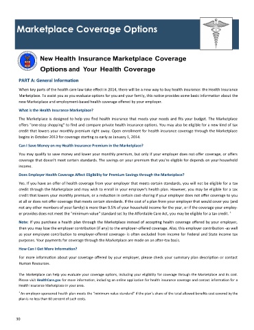 Marketplace. To assist you as you evaluate options for you and your family, this notice provides some basic information about the