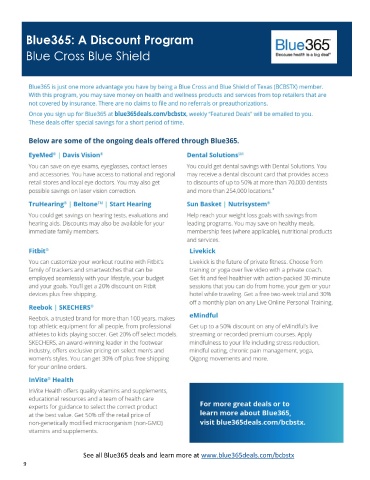 Blue365: A Discount Program Blue Cross Blue Shield See all Blue365 deals and learn more at www.blue365deals.com/bcbstx 9
