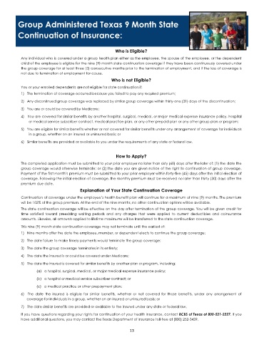 If you have questions regarding your rights for continuation of your health insurance, contact BCBS of Texas at 800-521-2227. If you
