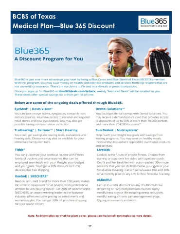 BCBS of Texas Medical Plan—Blue 365 Discount Note: For information on what the plans cover, please see the benefit summaries for more details. 12