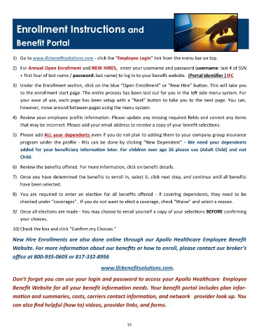 New Hire Enrollments are also done online through our Apollo Healthcare Employee Benefit