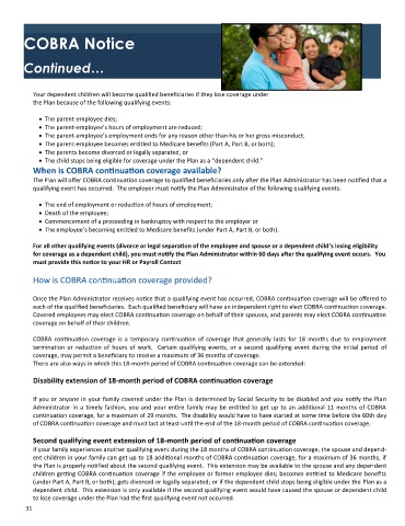 qualifying event has occurred. The employer must notify the Plan Administrator of the following qualifying events: