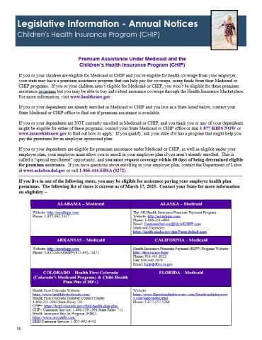 Legislative Information - Annual Notices Children's Health Insurance Program (CHIP) 36