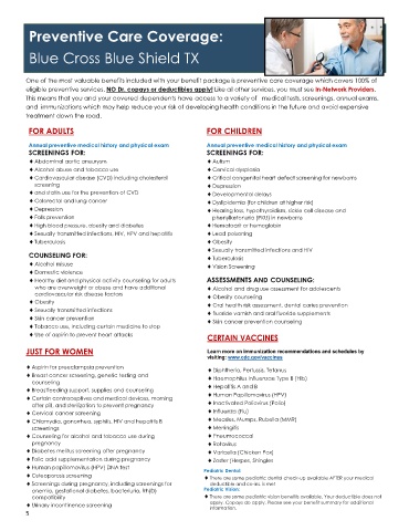 eligible preventive services. NO Dr. copays or deductibles apply! Like all other services, you must see In-Network Providers.