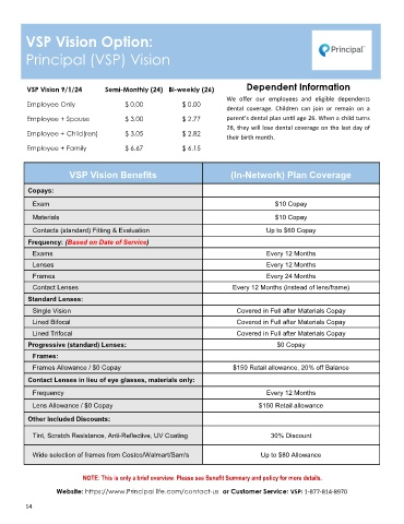 VSP Vision 9/1/24 Semi-Monthly (24) Bi-weekly (26) Dependent Information
