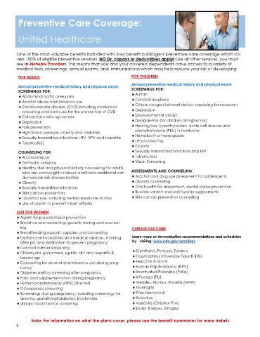 vers 100% of eligible preventive services. NO Dr. copays or deductibles apply! Like all other services, you must
