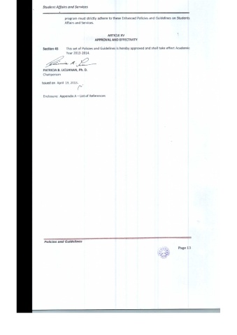 Section 45 This set of Policies and Guidelines is hereby approved and shall take effect Academic