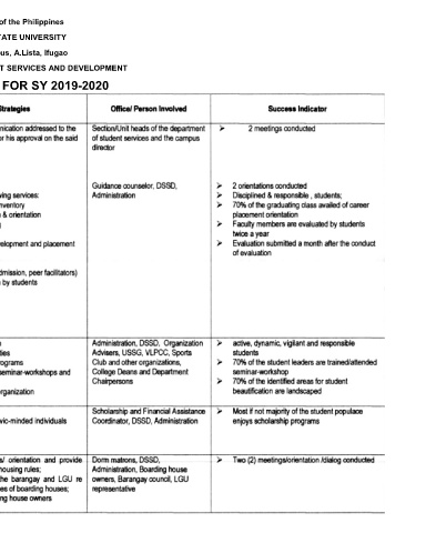 DEPARTMENT OF STUDENT SERVICES AND DEVELOPMENT