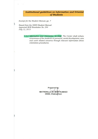 Institutional guidelines on Information and Orientat