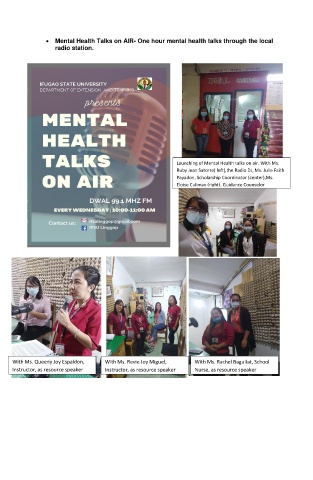 Mental Health Talks on AIR- One hour mental health talks through the local