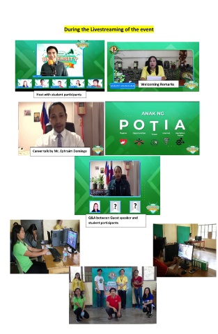 During the Livestreaming of the event Welcoming Remarks Host with student participants Career talk by Mr. Ephraim Domingo Q&A between Guest speaker and student participants