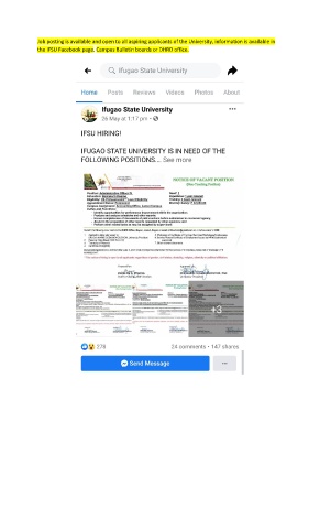 Job posting is available and open to all aspiring applicants of the University, information is available in the IFSU Facebook page, Campus Bulletin boards or DHRD office.