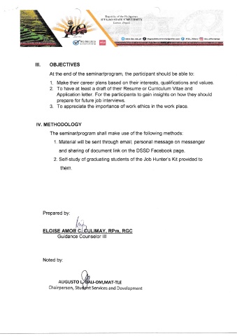 2. Self-study of graduating students of the Job Hunter's Kit provided to