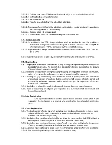 5.2.2.2. Transferees from SUCs shall be admitted and treated as regular students in accordance