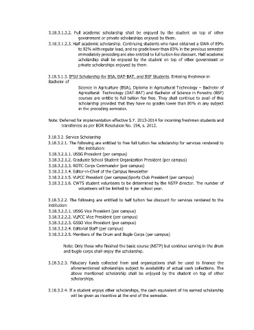 3.18.3.2.1. The following are entitled to free full tuition fee scholarship for services rendered to