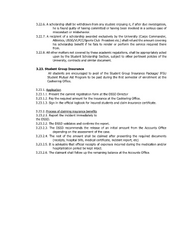 3.22.6. A scholarship shall be withdrawn from any student enjoying it, if after due investigation,
