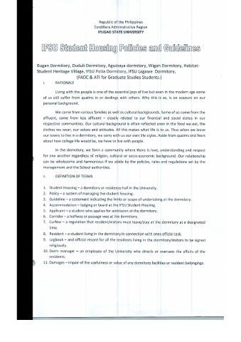 3.Guideline - a statement indicating the limits or scope of undertaking at the dormitory.