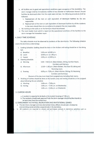 b.All facilities are in good and operational conditions upon occupancy of the dormitory. The