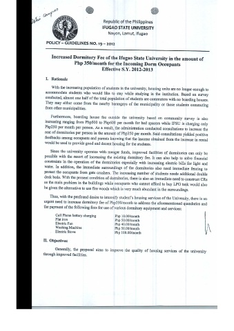 Increased Dormitory Fee of the Ifugao State University in the amount of