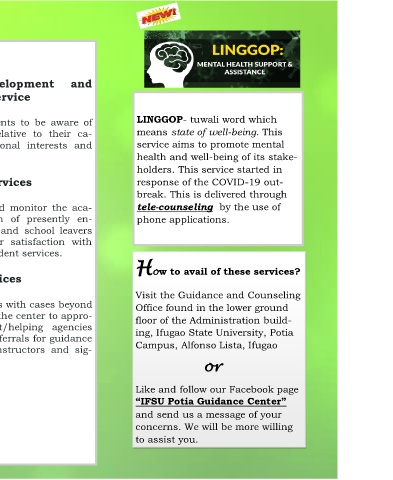 aware of their potentials, interest, priate specialist/helping agencies ing, Ifugao State University, Potia
