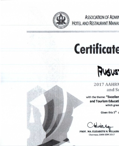 and Tourism Education" on May 4 & 5,2017 at the Manila Grand Opera Hotel
