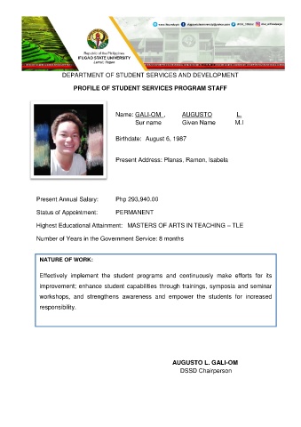 DEPARTMENT OF STUDENT SERVICES AND DEVELOPMENT