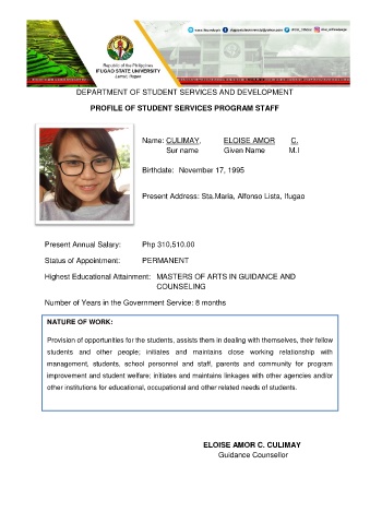 PROFILE OF STUDENT SERVICES PROGRAM STAFF