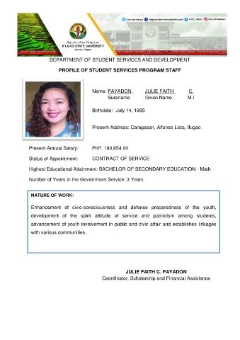 PROFILE OF STUDENT SERVICES PROGRAM STAFF